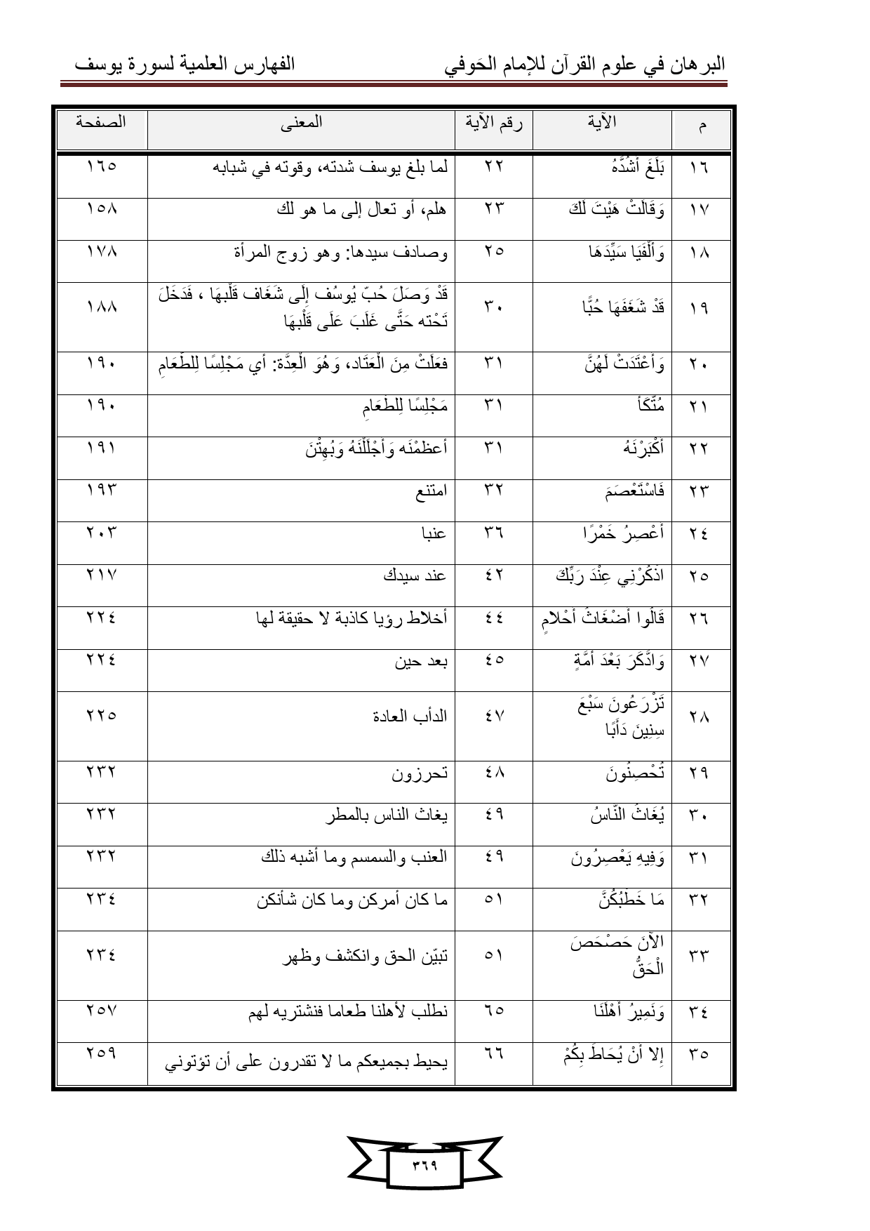 كتاب البرهان في علوم القرآن للإمام الحوفي - سورة يوسف