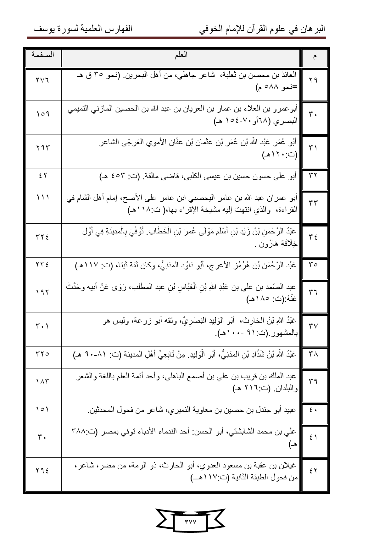 كتاب البرهان في علوم القرآن للإمام الحوفي - سورة يوسف