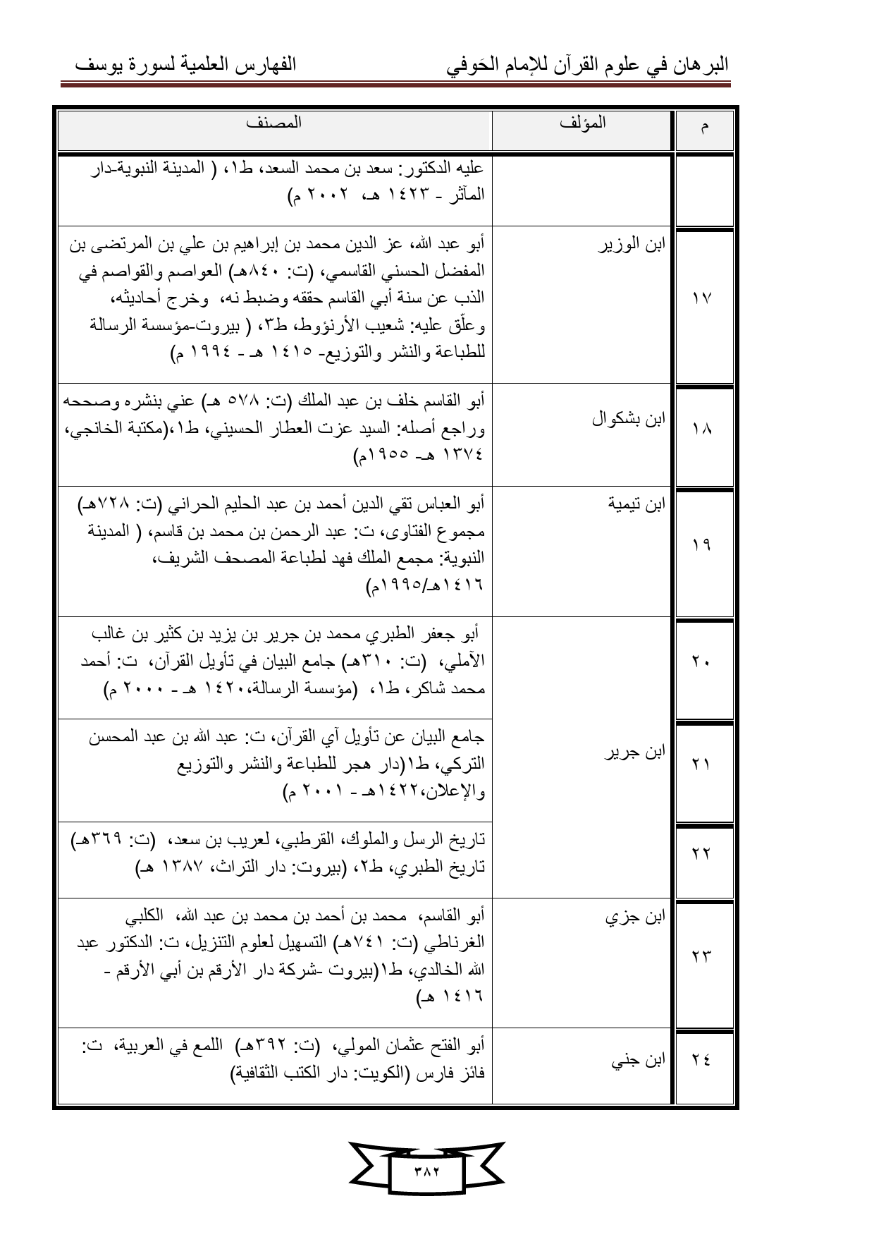 كتاب البرهان في علوم القرآن للإمام الحوفي - سورة يوسف