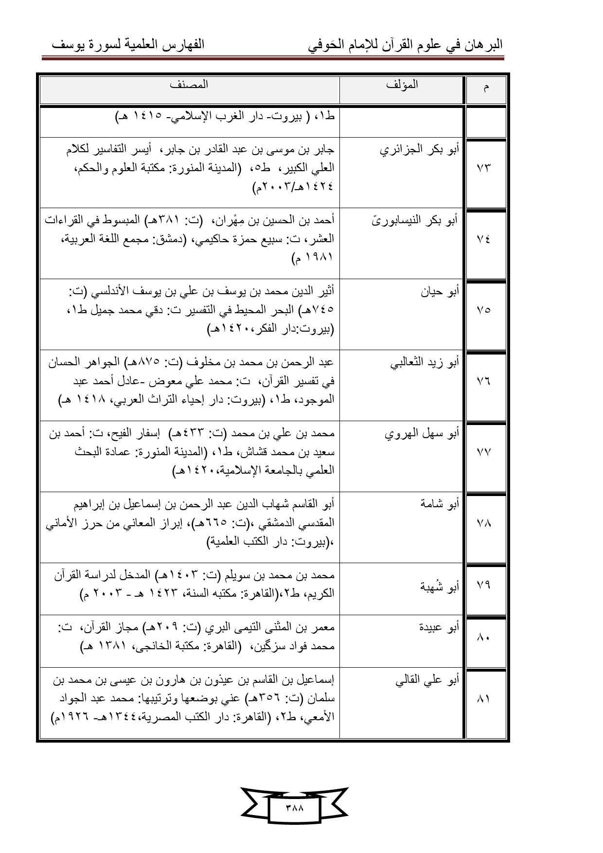 كتاب البرهان في علوم القرآن للإمام الحوفي - سورة يوسف