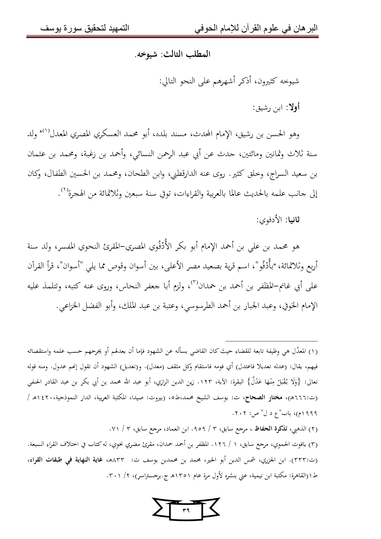 كتاب البرهان في علوم القرآن للإمام الحوفي - سورة يوسف
