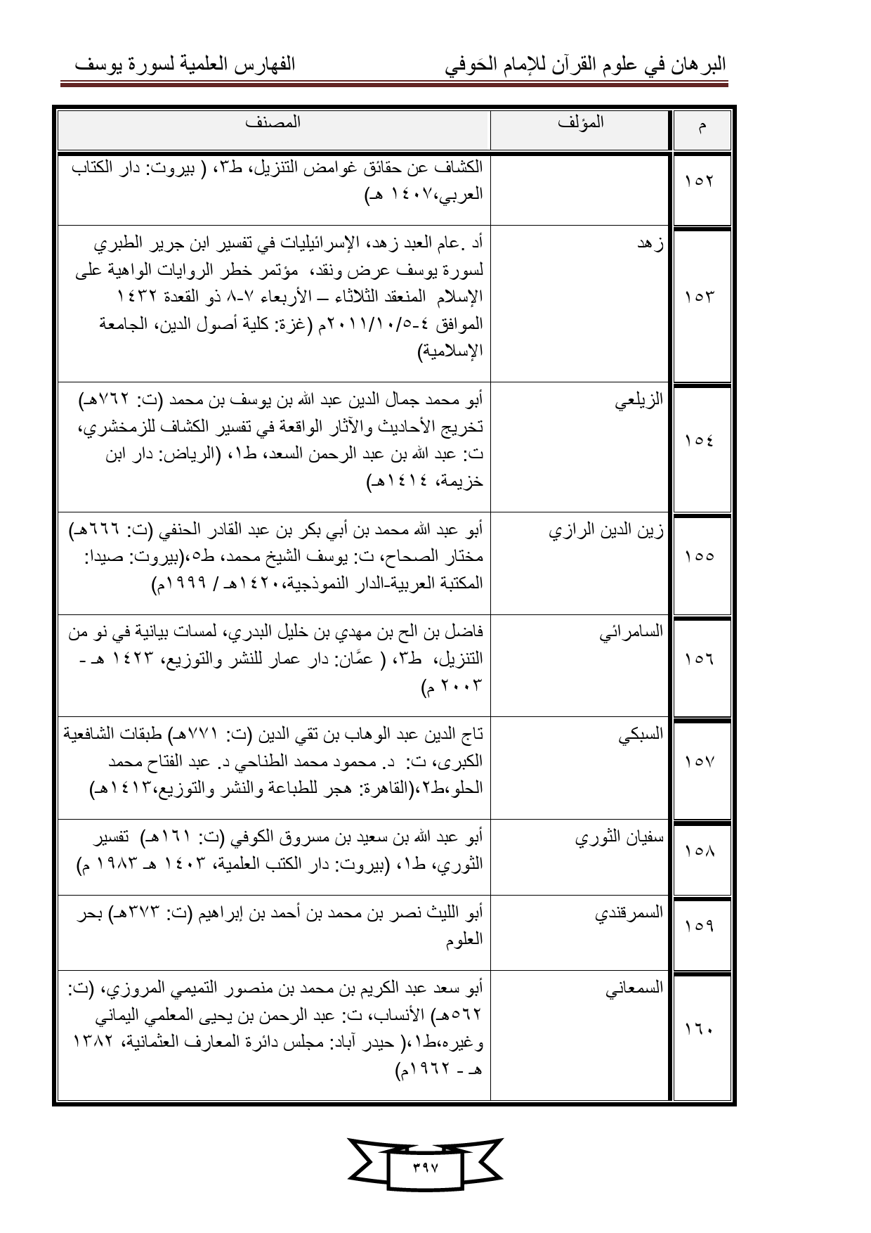 كتاب البرهان في علوم القرآن للإمام الحوفي - سورة يوسف