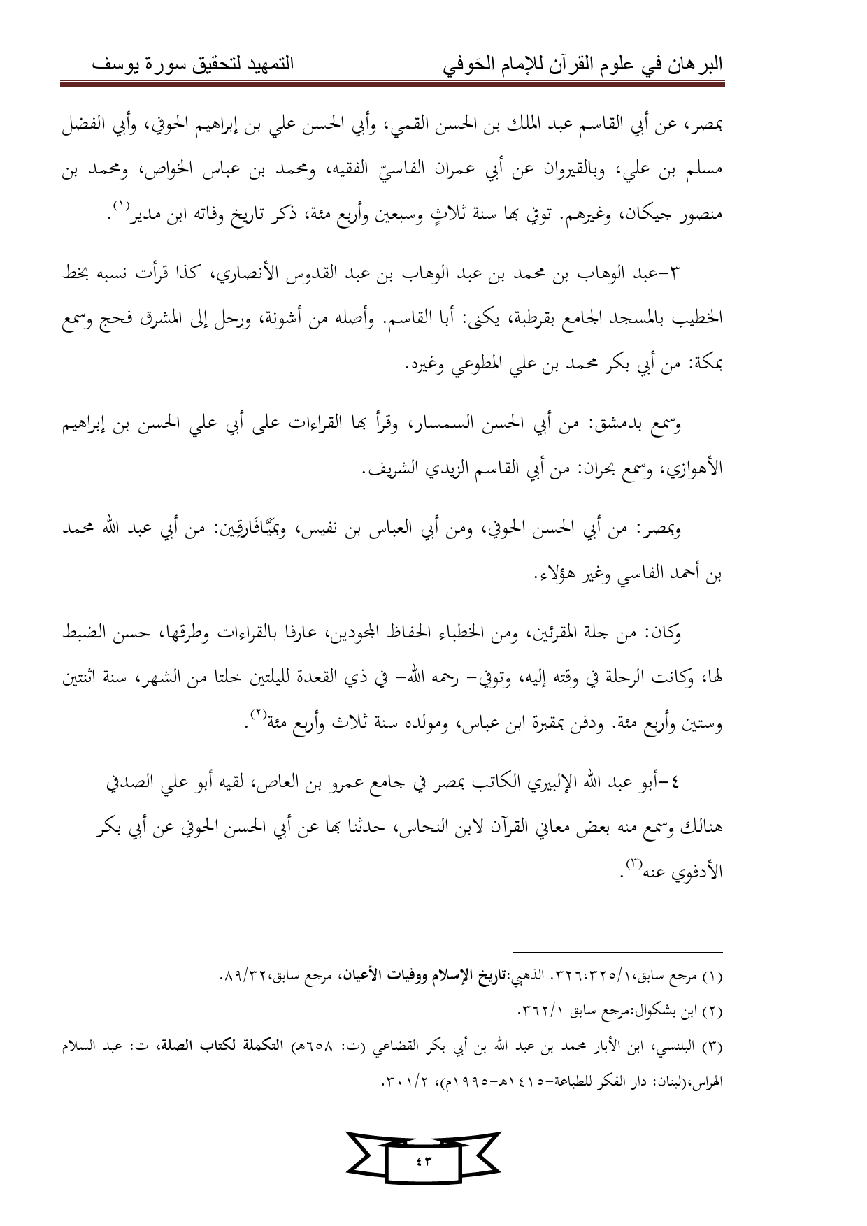 كتاب البرهان في علوم القرآن للإمام الحوفي - سورة يوسف
