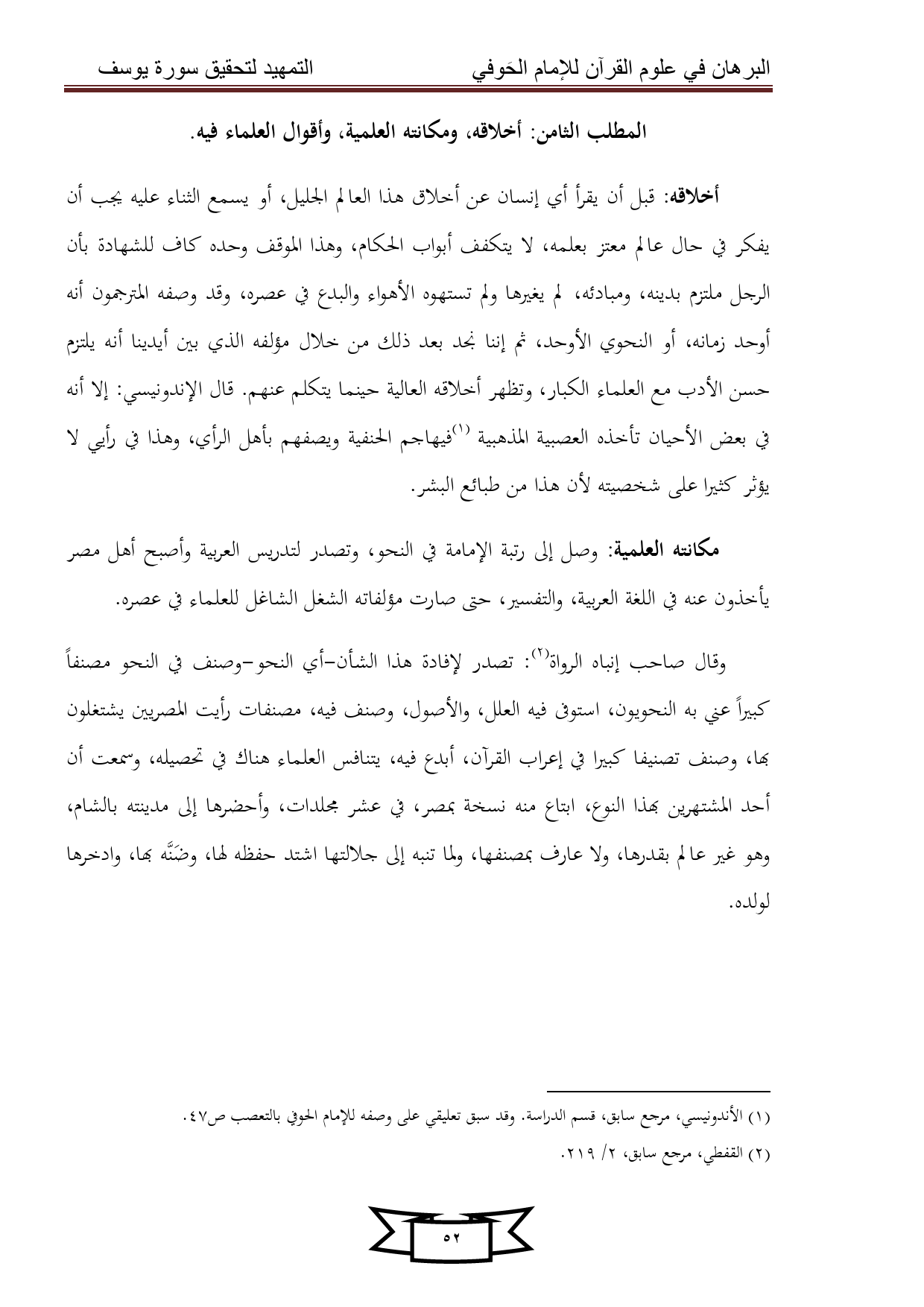 (¬1) الأندونيسي، مرجع سابق، قسم الدراسة. وقد سبق تعليقي على وصفه للإمام الحوفي بالتعصب ص 47.