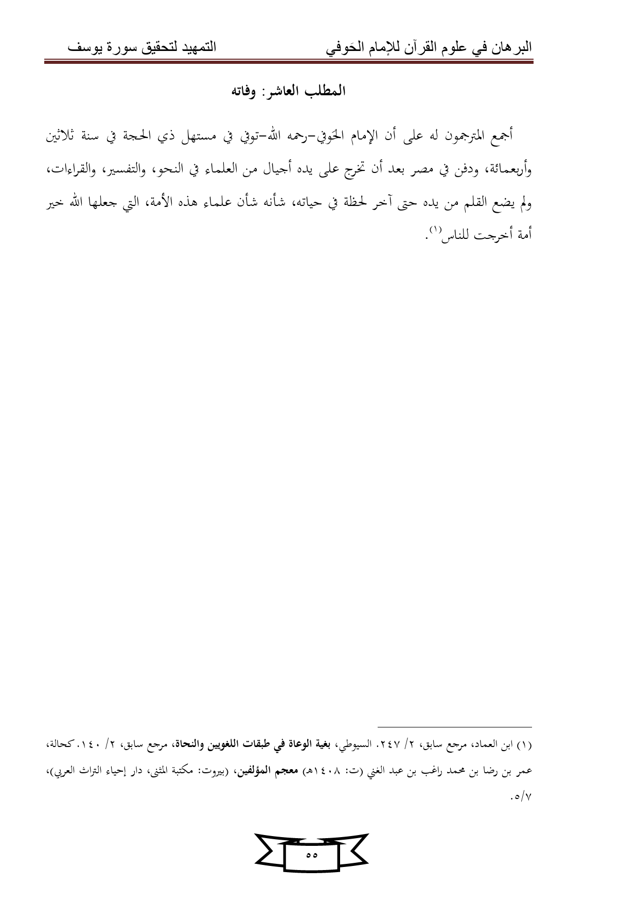 كتاب البرهان في علوم القرآن للإمام الحوفي - سورة يوسف