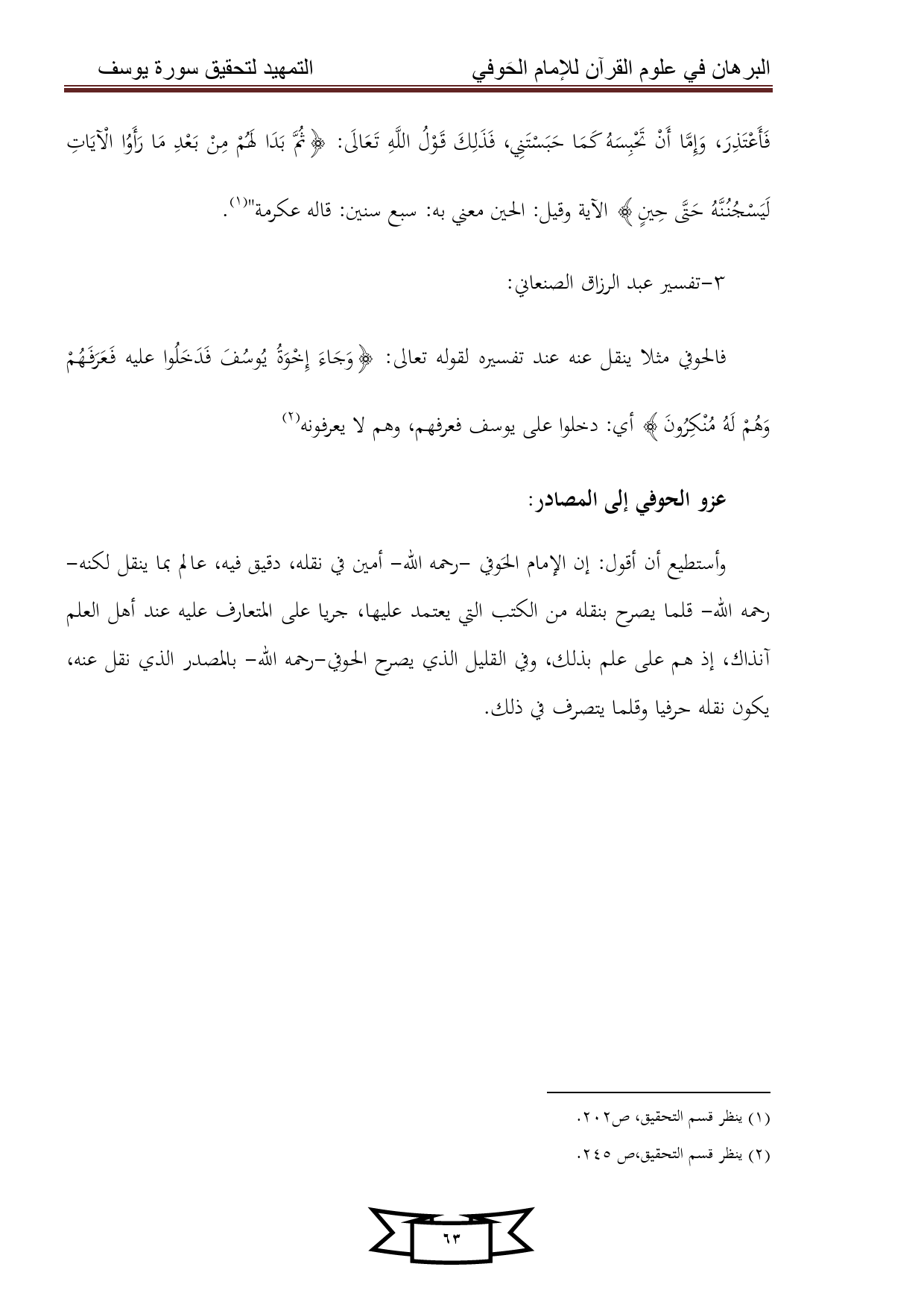 كتاب البرهان في علوم القرآن للإمام الحوفي - سورة يوسف