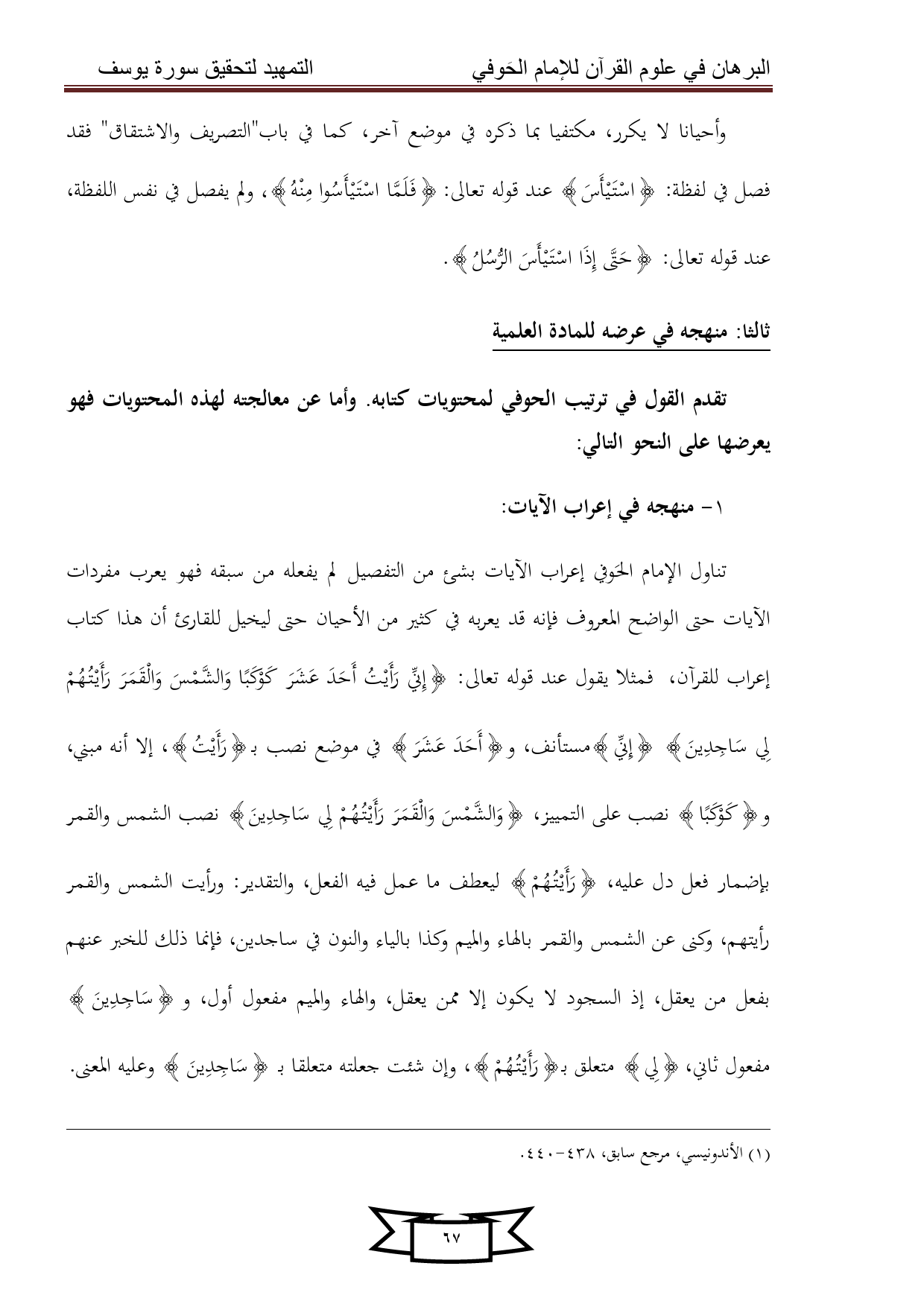 كتاب البرهان في علوم القرآن للإمام الحوفي - سورة يوسف