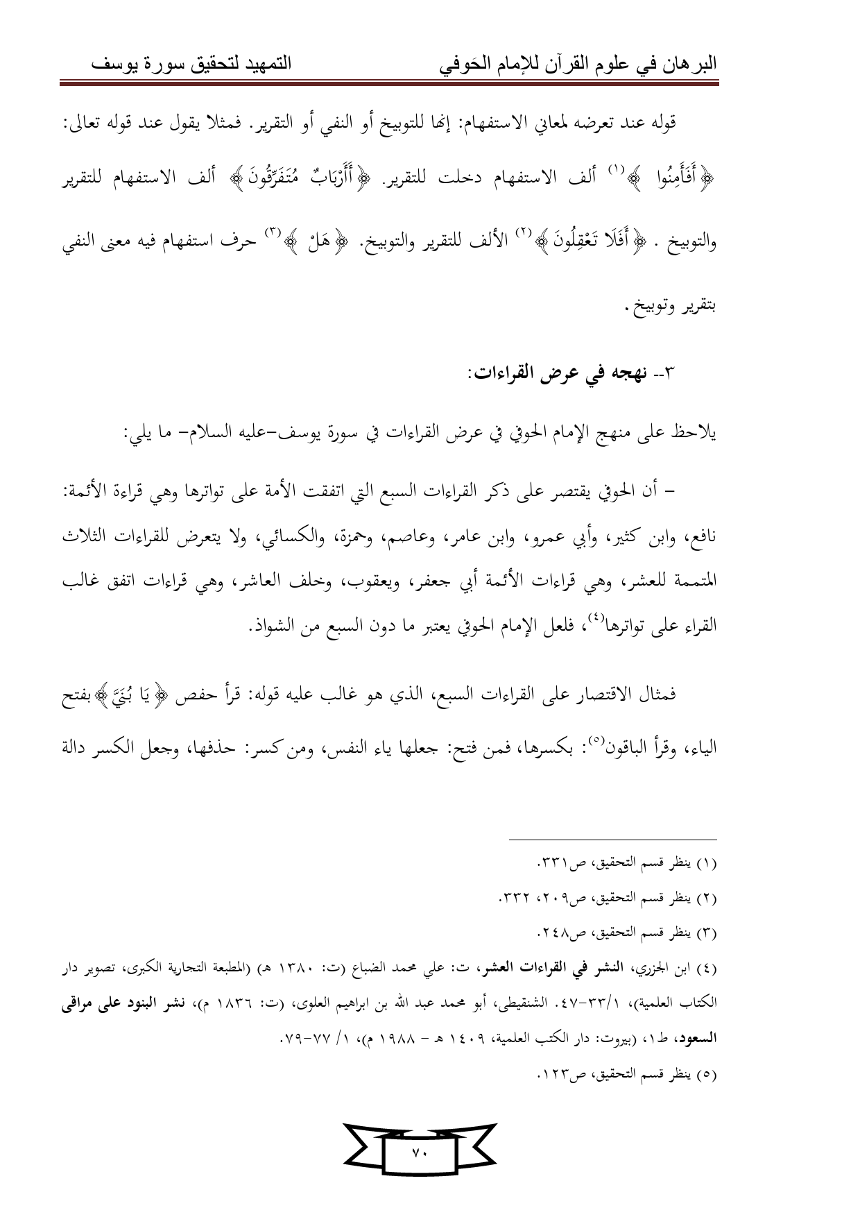 كتاب البرهان في علوم القرآن للإمام الحوفي - سورة يوسف