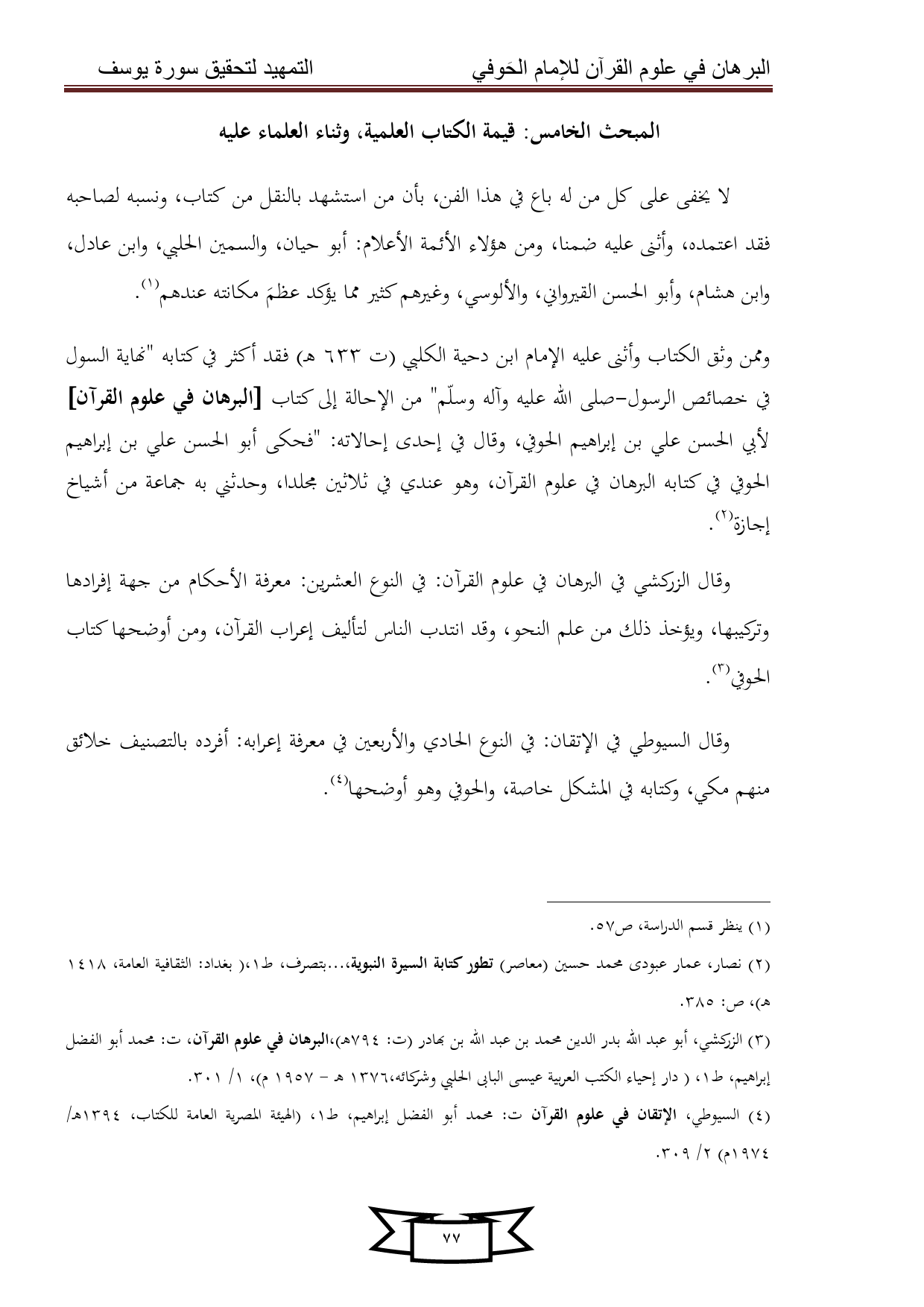 كتاب البرهان في علوم القرآن للإمام الحوفي - سورة يوسف