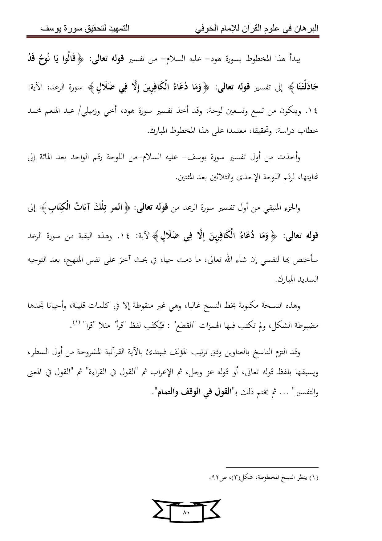 كتاب البرهان في علوم القرآن للإمام الحوفي - سورة يوسف