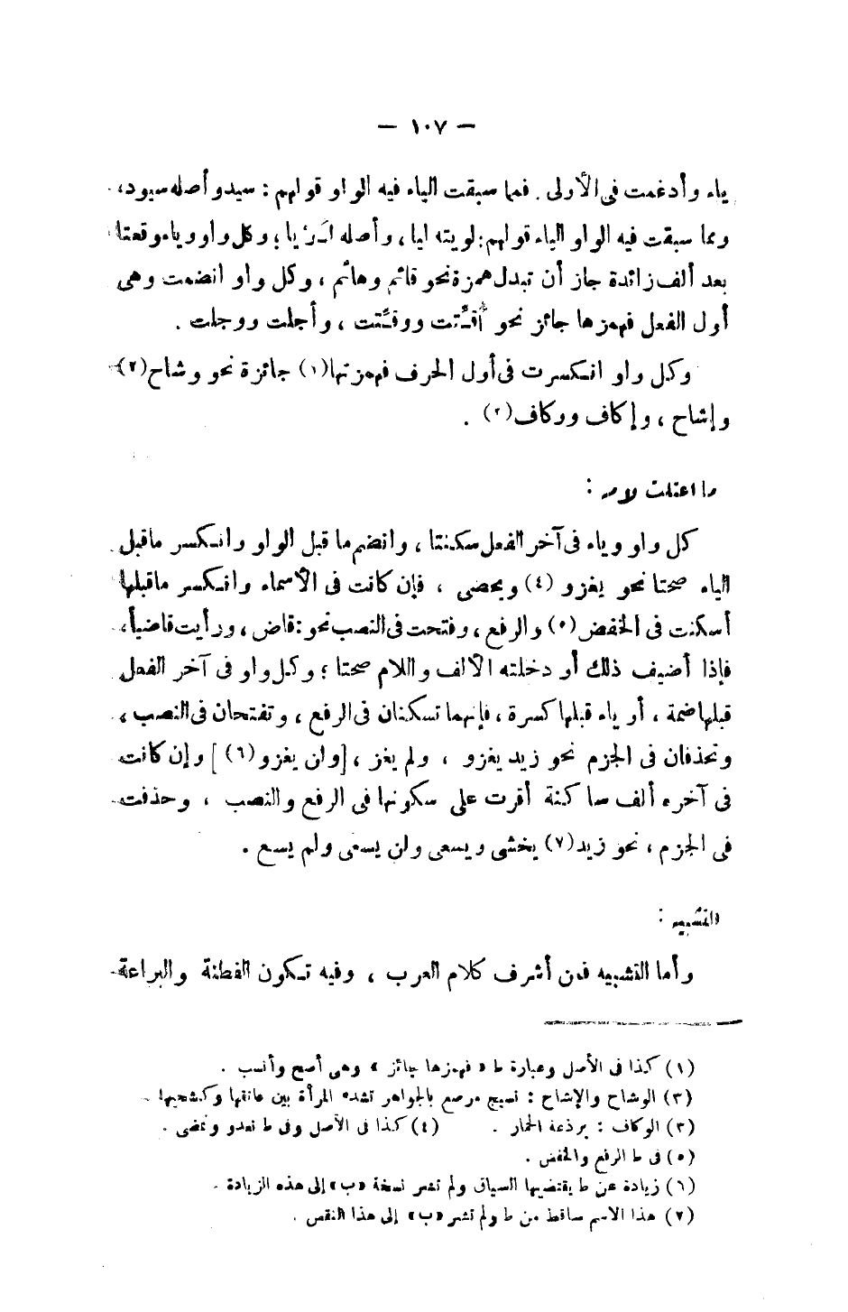 كل واو ياء في آخر الفعل سكنتا، وانضم ما قبل الواو وانكسر ما قبل الياء صحتا نحو يغزو ويحصى، فإن كانت في الأسماء وانكسر ما قبلها أسكنت في الخفض والرفع، وفتحت في النصب نحو: قاض، ورأيت قاضياً، فإذا أضيف ذلك أو دخلته الألف واللام صحتا؛ وكل واو في آخر الفعل قبلها ضمة، أو ياء قبلها كسرة، فإنهما تسكنان في الرفع، وتفتحان في النصب، وتحذفان في الجزم نحو زيد يغزو، ولم يغز، [وإن يغزو] وإن كانت في آخره ألف ساكنة أقرت على سكونها في الرفع والنصب، وحذفت في الجزم، نحو زيد يخشى ويسعى ولن يسعى ولم يسع.