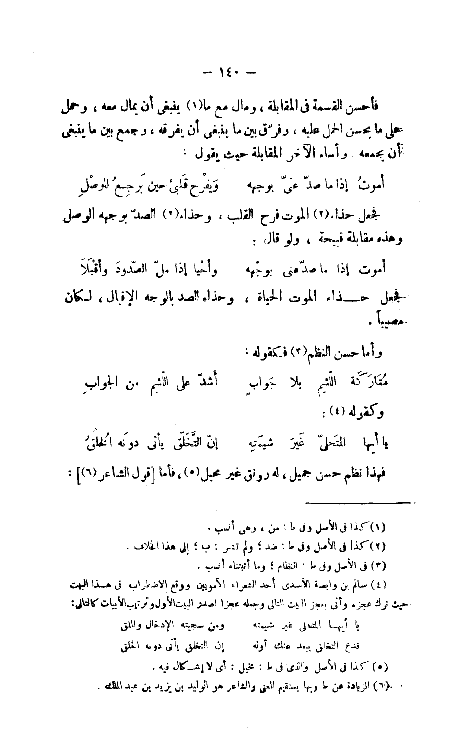 فأحسن القسمة في المقابلة، ومال مع ما ينبغي أن بمال معه، وحمل على ما يحسن الحمل عليه، وفرق بين ما ينبغي أن يفرقه، وجمع بين ما ينبغي أن يجمعه وأساء الآخر المقابلة حيث يقول: