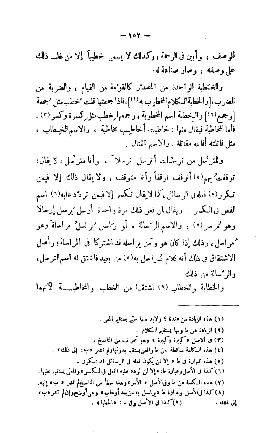 والخطبة الواحدة من المصدر كالقومة من القيام، والضربة من الضرب [والخطبة الكلام المخطوب به]، فإذا جمعتها قلت خطب مثل جمعة [وجمع] والخطبة اسم المخطوبة، وجمعها خطب مثل كسرة وكسر فأما المخاطبة فيقال منها: خاطبت أخاطب مخاطبة، والاسم الخطاب، مثل قاتلته أقاتله مقاتلة، والاسم القتال.