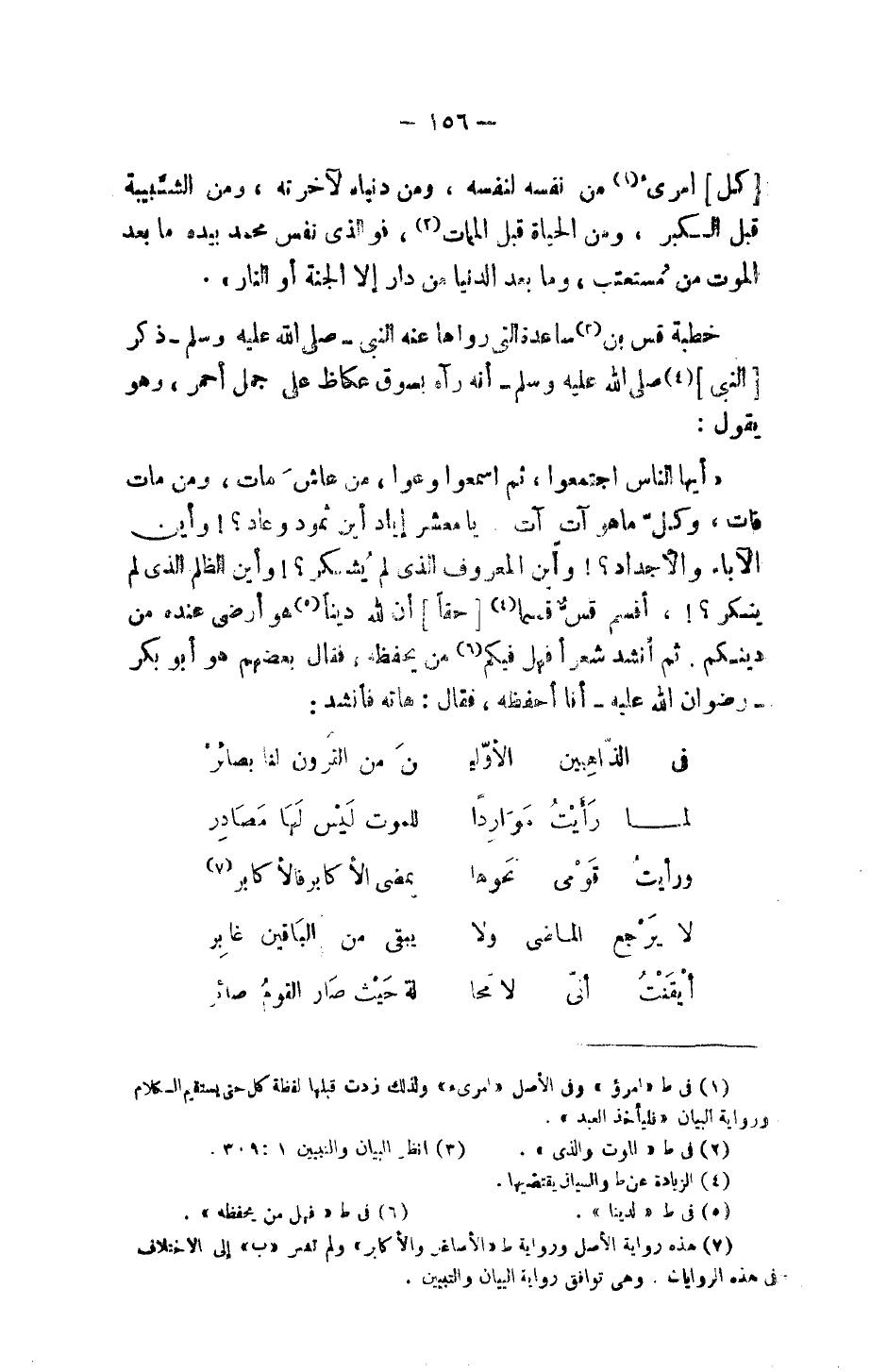 خطبة قس بن ساعدة التي رواها عنه النبي -صلى الله عليه وسلم - ذكر [النبي]-صلى الله عليه وسلم - أنه رآه بسوق عكاظ على جمل أحمر، وهو يقول: