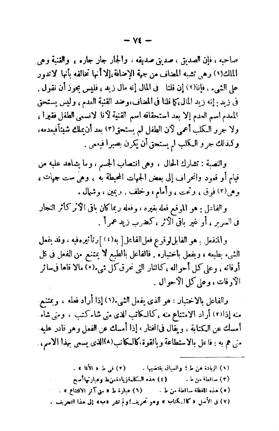 والمنفعل: هو القابل لوقوع فعل الفاعل [به] وتأثيره فيه، وقد يفعل الشيء بطبعه، ويفعل باختياره. فالفاعل بالطبع لا يمتنع من الفعل في كل أوقاته، وعلى كل أحواله، كالنار التي تحرق كل شيء ما لاقاها في سائر الأوقات، وعلى كل الأحوال.
