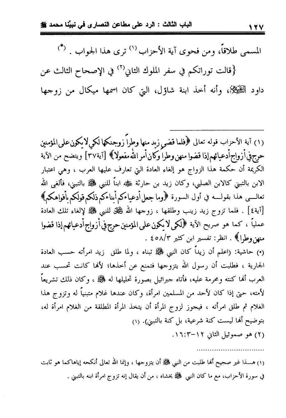 (قالت توراتكم في سفر الملوك الثاني2 في الإصحاح الثالث عن داود عليه السلام، وأنه أخذ ابنة شاؤل، التي كان اسمها ميكال من زوجها