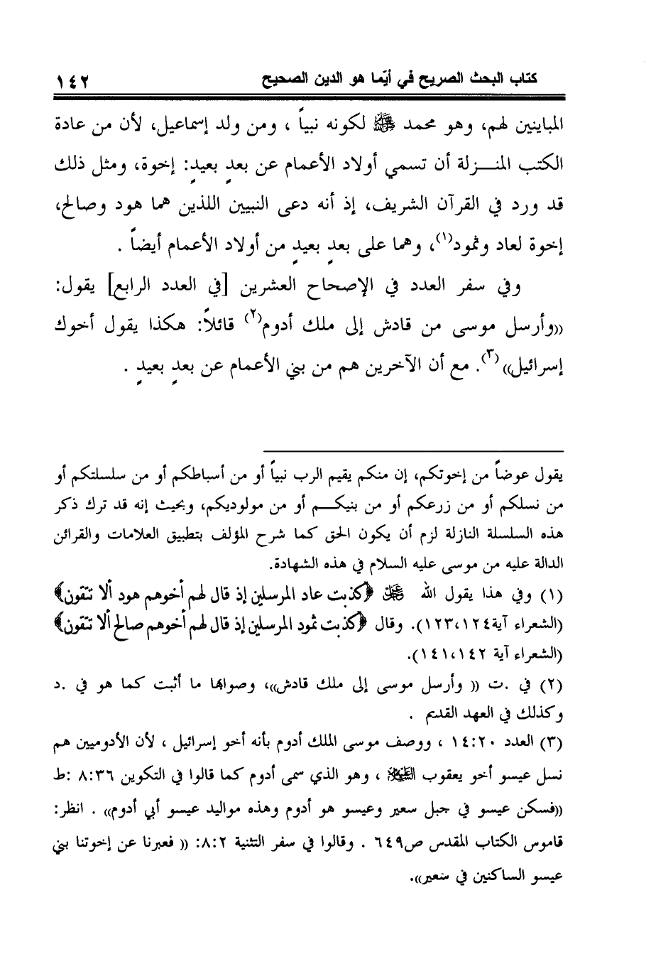 وفي سفر العدد في الإصحاح العشرين [في العدد الرابع] يقول: "وأرسل موسى من قادش إلى ملك أدوم2 قائلاً: هكذا يقول أخوك إسرائيل"3. مع أن الآخرين هم من بني الأعمام عن بعدٍ بعيدٍ.