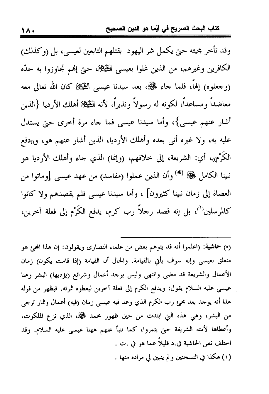 وقد تأخر مجيئه حتى يكمل شر اليهود بقتلهم التابعين لعيسى، بل (وكذلك) الكافرين وغيرهم، من الذين غلوا بعيسى عليه السلام، حتى إنهم تجاوزوا به حدّه (وجعلوه) إلهاً، فلما جاء صلى الله عليه وسلم، بعد سيدنا عيسى عليه السلام كان الله تعالى معه معاضداً ومساعداً، لكونه له رسولاً ونذيراً، لأنهعليه السلام أهلك الأرديا {الذين أشار عنهم عيسى} ، وأما سيدنا عيسى فما جاء مرة أخرى حتى يستدل عليه به، ولا غيره أتى بعده وأهلك الأرديا، الذين أشار عنهم هو، و"دفع الكَرْم"، أي: الشريعة، إلى خلافهم، (وإنما) الذي جاء وأهلك الأرديا هو نبينا الكامل صلى الله عليه وسلم * وأن الذين عملوا (مفاسد) من عهد عيسى [وماتوا من العصاة إلى زمان نبينا كثيرون] ، وأما سيدنا عيسى فلم يقصدهم ولا كانوا كالمرسلين1، بل إنه قصد رجلاً رب كرم، يدفع الكَرْم إلى فعلة آخرين،