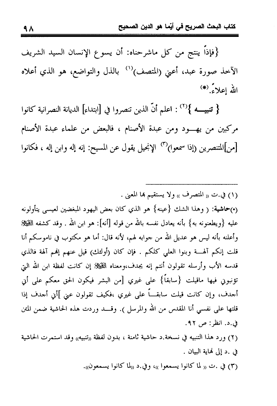 (تنبيه) 3: اعلم أنّ الذين تنصروا في [ابتداء] الديانة النصرانية كانوا مركبين من يهود ومن عبدة الأصنام، فالبعض من علماء عبدة الأصنام [من] المتنصرين إذا سمعوا4 الإنجيل يقول عن المسيح: إنه إله وابن إله، فكانوا