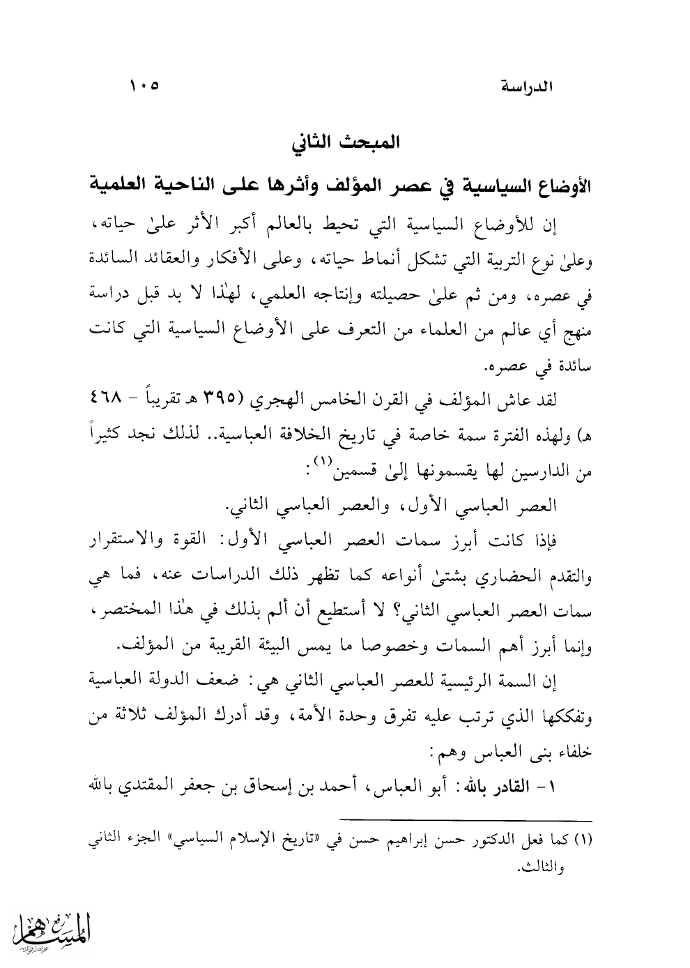 1 - القادر بالله: أبو العباس، أحمد بن إسحاق بن جعفر المقتدي بالله