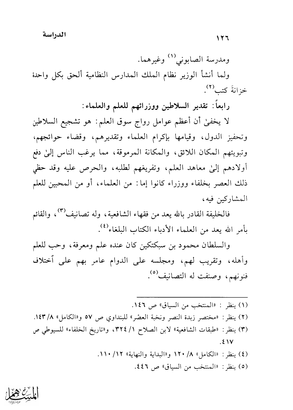 فالخليفة القادر بالله يعد من فقهاء الشافعية، وله تصانيف (¬3)، والقائم بأمر الله يعد من العلماء الأدباء الكتاب البلغاء (¬4).