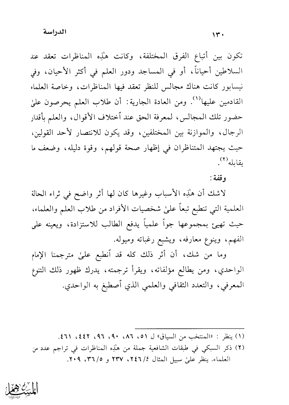 (¬2) ذكر السبكي في طبقات الشافعية جملة من هذه المناظرات في تراجم عدد من العلماء. ينظر على سبيل المثال؛/ 246، 237 و 5/ 36، 209.