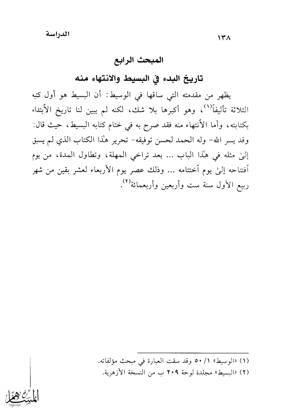 (¬1) "الوسيط" 1/ 50 وقد سقت العبارة في مبحث مؤلفاته.