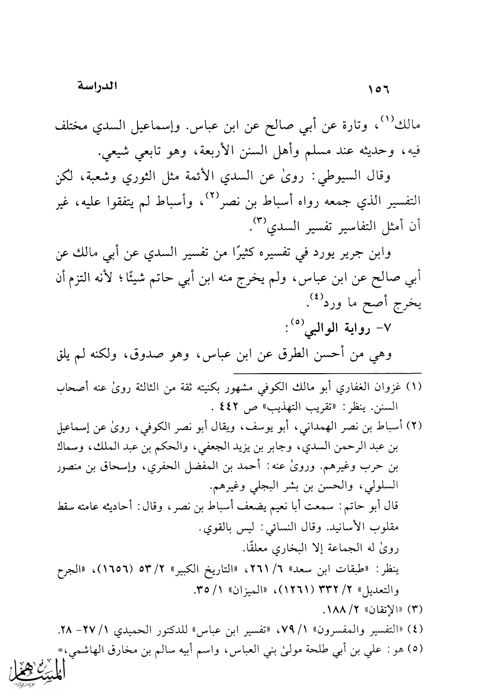 وابن جرير يورد في تفسيره كثيرًا من تفسير السدي عن أبي مالك عن أبي صالح عن ابن عباس، ولم يخرج منه ابن أبي حاتم شيئًا؛ لأنه التزم أن يخرج أصح ما ورد (¬4).