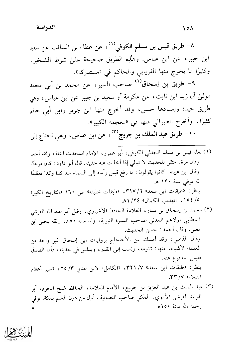 9 - طريق بن إسحاق (¬2) صاحب السير، عن محمد بن أبي محمد مولى آل زيد ابن ثابت، عن عكرمة أو سعيد بن جبير عن ابن عباس، وهي طريق جيدة وإسنادها حسن، وقد أخرج منها ابن جرير وابن أبي حاتم كثيرًا، وأخرج الطبراني منها في "معجمه الكبير".