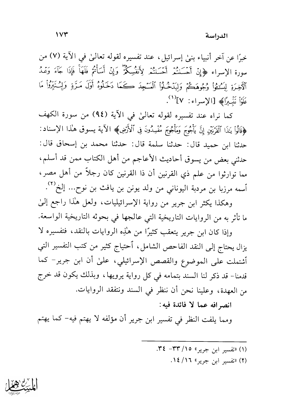 (¬1) "تفسير ابن جرير" 15/ 33 - 34.