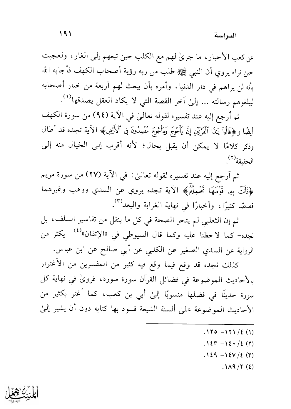 ثم ارجع إليه عند تفسيره لقوله تعالى: في الآية (27) من سورة مريم {فَأَتتَ به قَومَهَا تَحمِلُه} الآية تجده يروي عن السدي ووهب وغيرهما قصصًا كثيرًا، وأخبارًا في نهاية الغرابة والبعد (¬3).