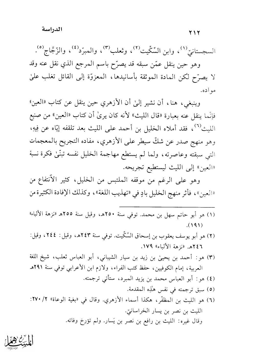 (¬6) هو الليث بن المظفّر، هكذا أسماء الأزهري. وقال في "بغية الوعاة" 2/ 270: الليث بن نصر بن يسار الخراسانيّ. وقال غيره: الليث بن رافع بن نصر بن يَسار. ولم تؤرخ وفاته.