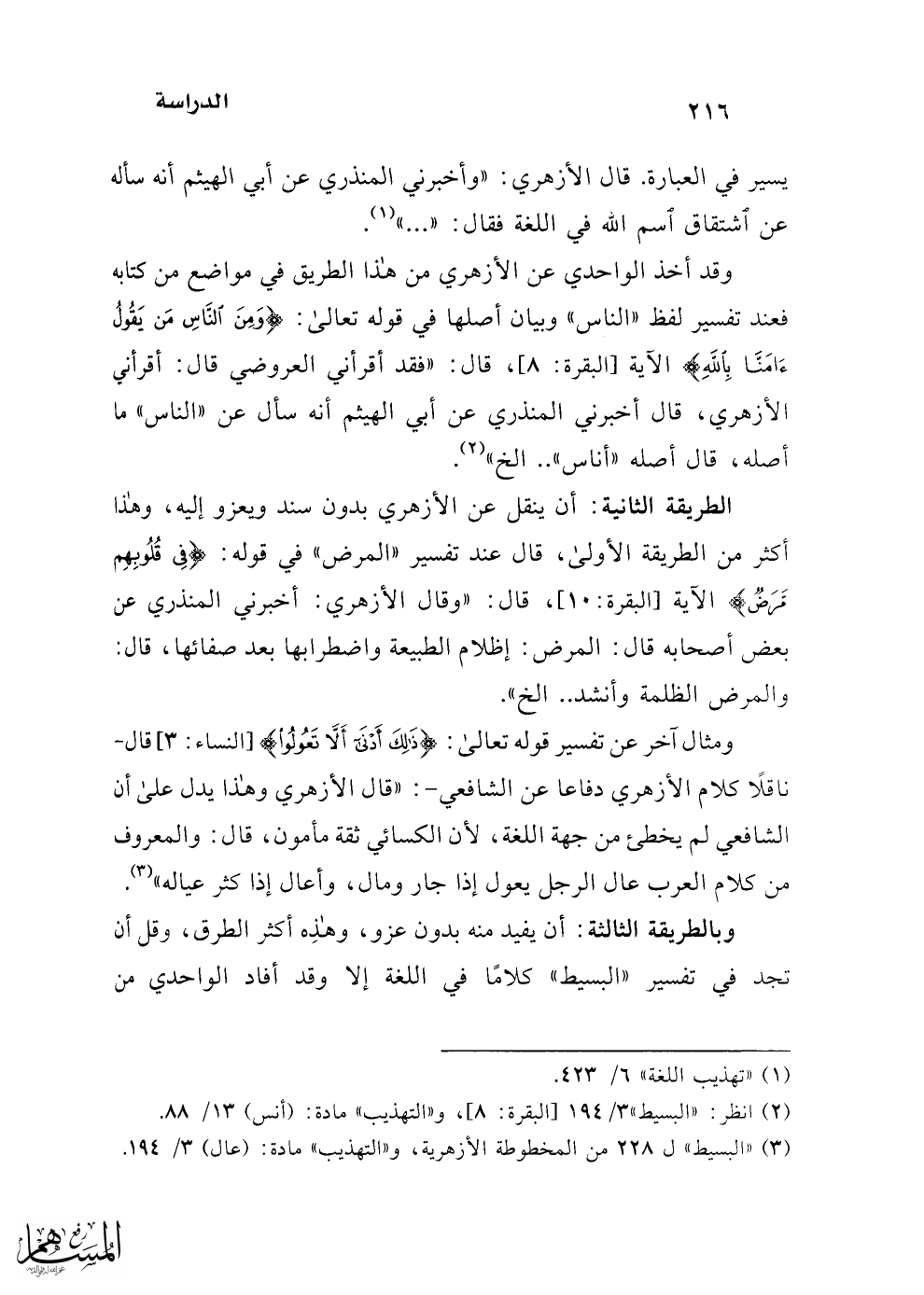 (¬2) انظر: "البسيط" 3/ 194 [البقرة: 8]، و"التهذيب" مادة: (أنس) 13/ 88.