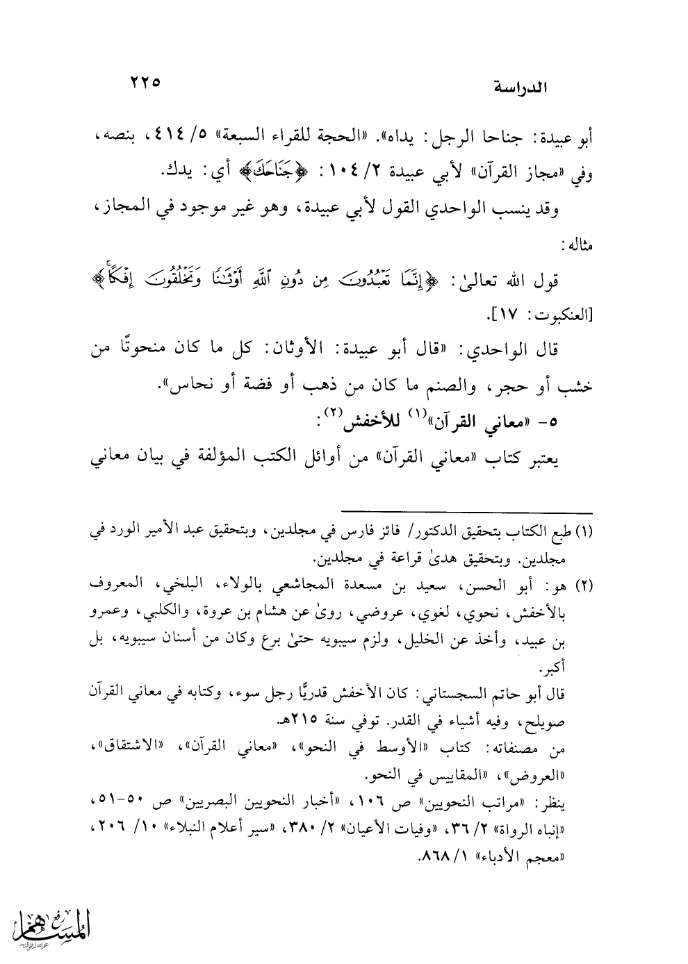 5 - " معاني القرآن" (¬1) للأخفش (¬2):