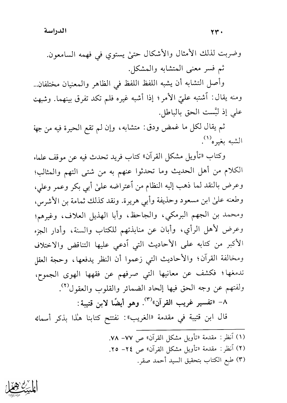 (¬1) انظر: مقدمة "تأويل مشكل القرآن" ص 77 - 78.
