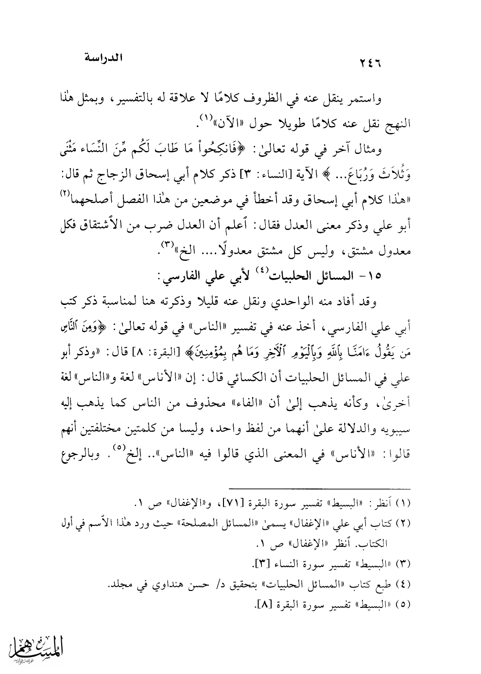 15 - المسائل الحلبيات (¬4) لأبي علي الفارسي: