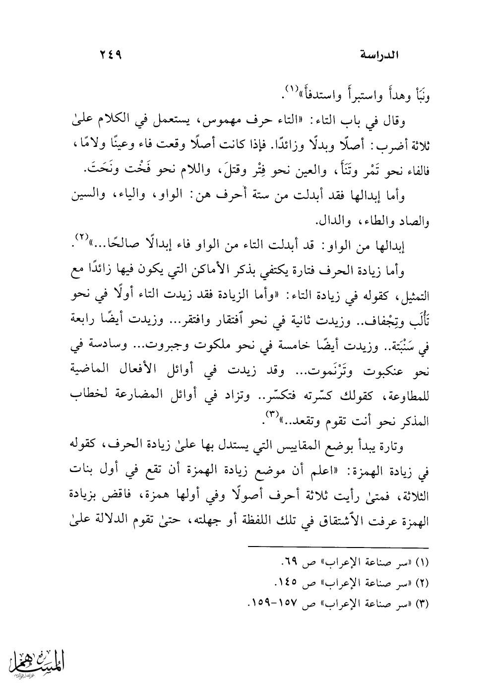 (¬3) "سر صناعة الإعراب" ص 157 - 159.