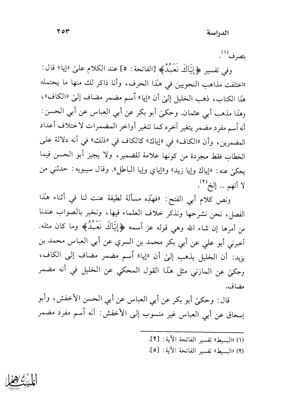 (¬2) "البسيط" تفسير الفاتحة الآية: [5].