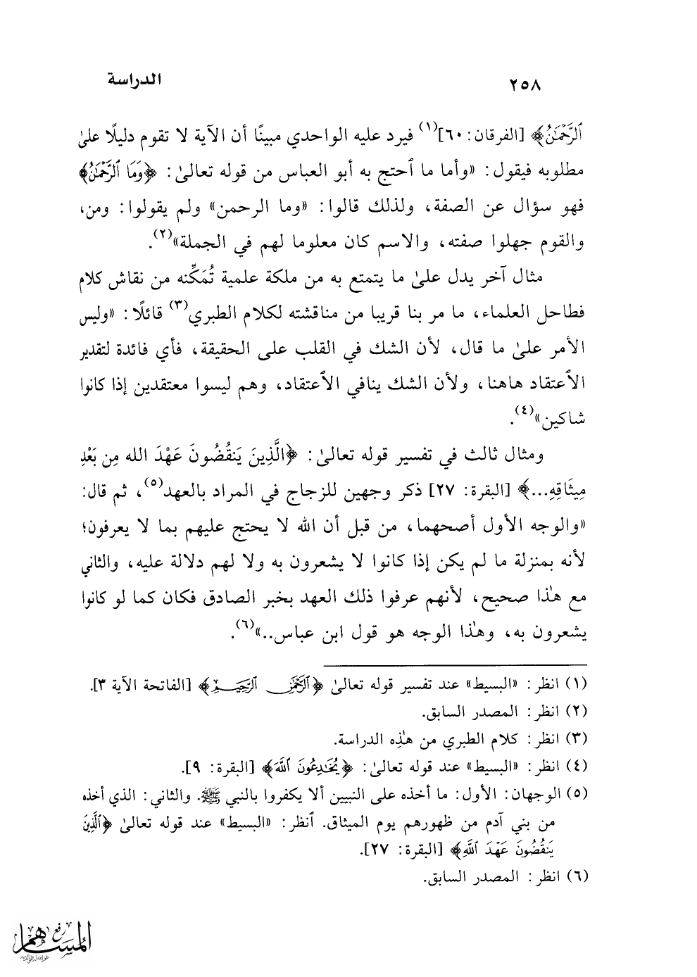 (¬1) انظر: "البسيط" عند تفسير قوله تعالى {الرَّحْمَنِ الرَّحِيمِ} [الفاتحة الآية 3].
