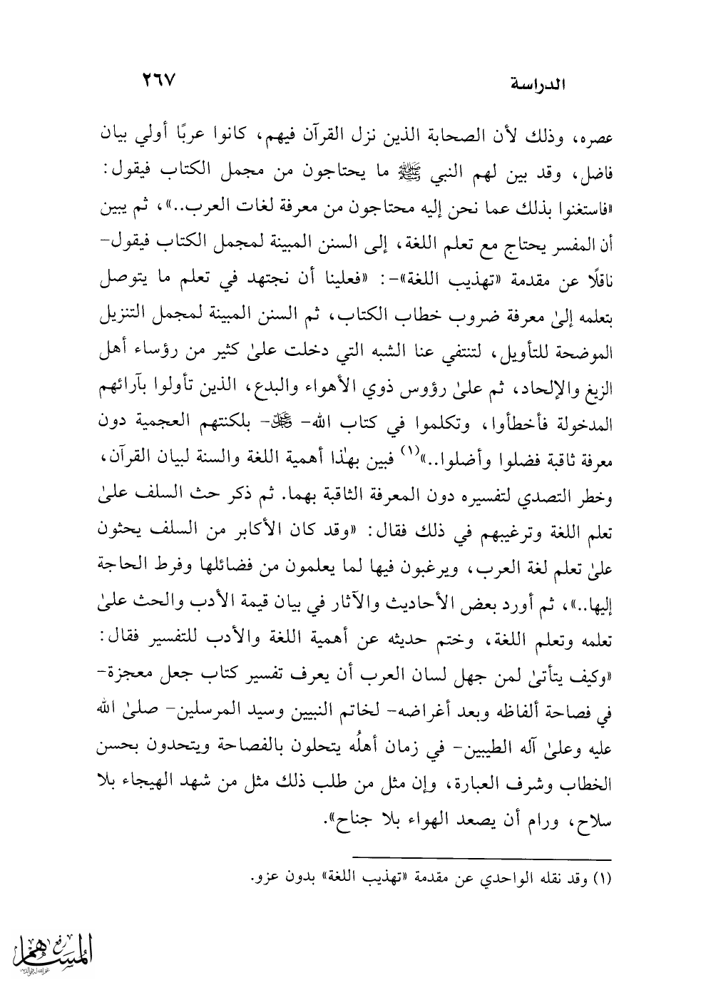 (¬1) وقد نقله الواحدي عن مقدمة "تهذيب اللغة" بدون عزو.