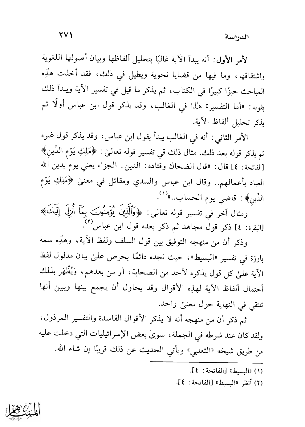 (¬2) انظر "البسيط" [الفاتحة: 4].