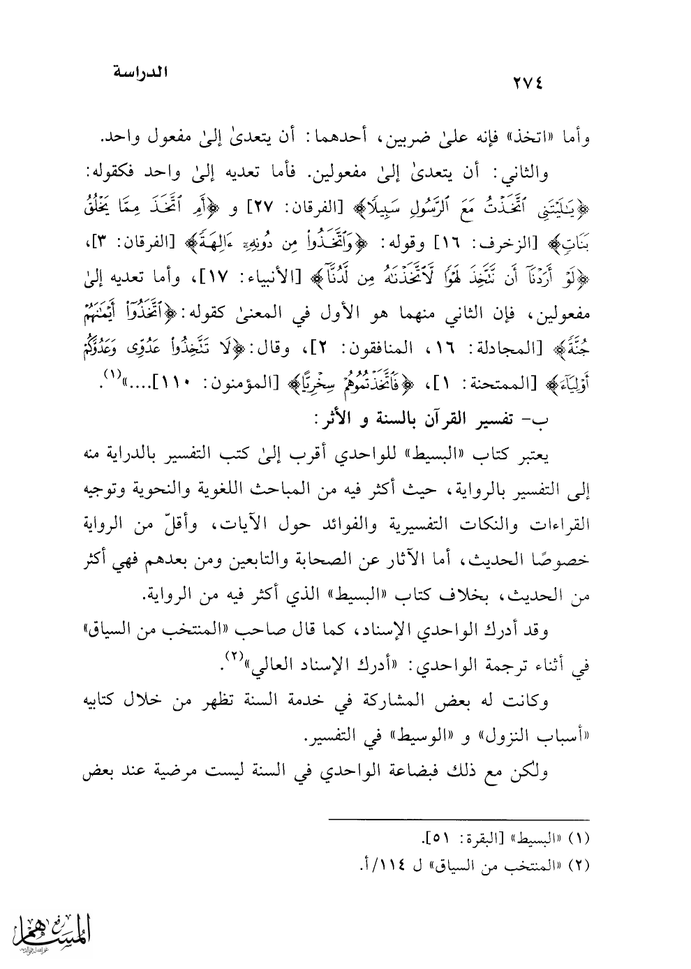 ولكن مع ذلك فبضاعة الواحدي في السنة ليست مرضية عند بعض
