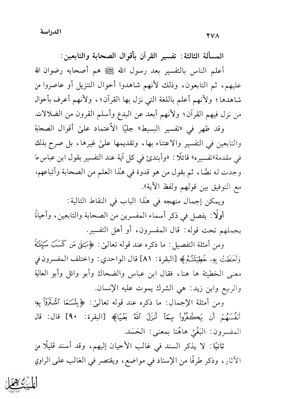 المسألة الثالثة: تفسير القرآن بأقوال الصحابة والتابعين: