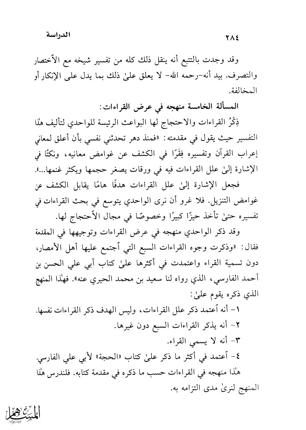 4 - اعتمد في أكثر ما ذكر على كتاب "الحجة" لأبي علي الفارسي،