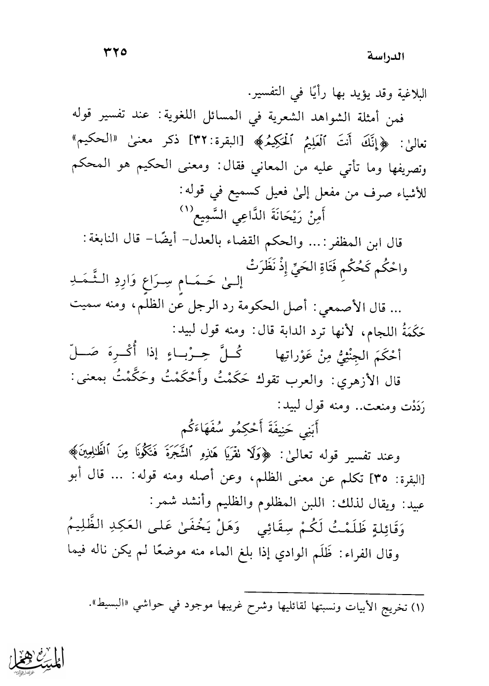 البلاغية وقد يؤيد بها رأيًا في التفسير.