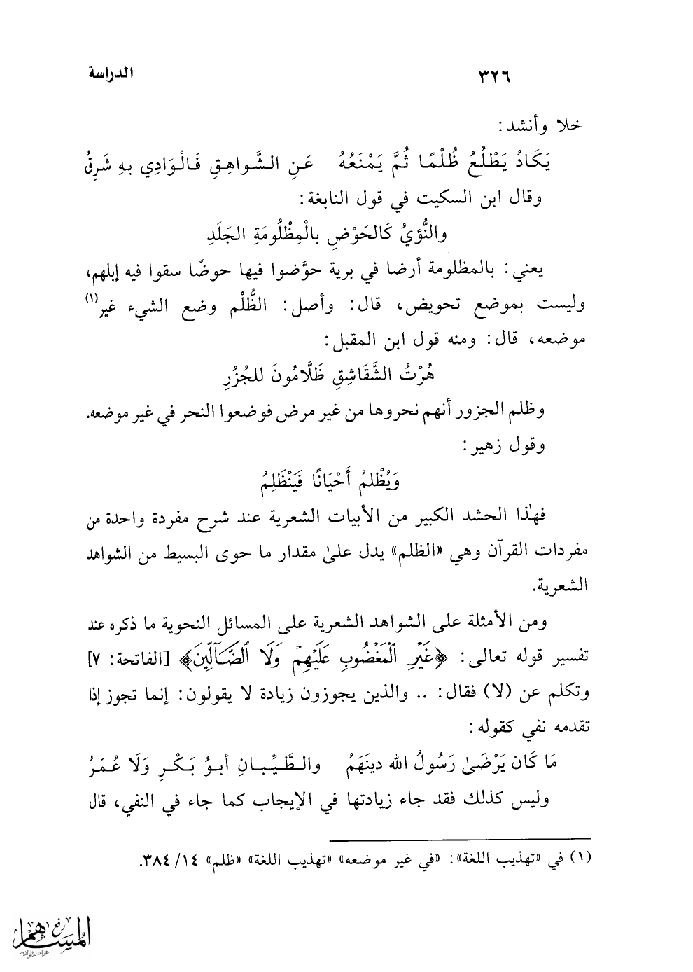 (¬1) في "تهذيب اللغة": "في غير موضعه" "تهذيب اللغة" "ظلم" 14/ 384.