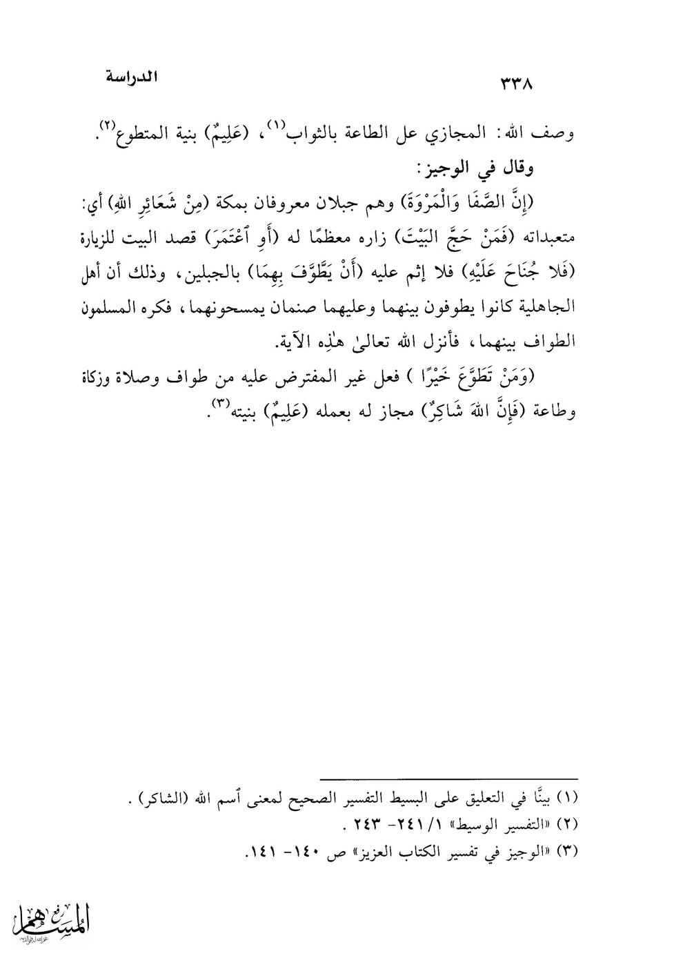 (¬3) "الوجيز في تفسير الكتاب العزيز" ص 140 - 141.
