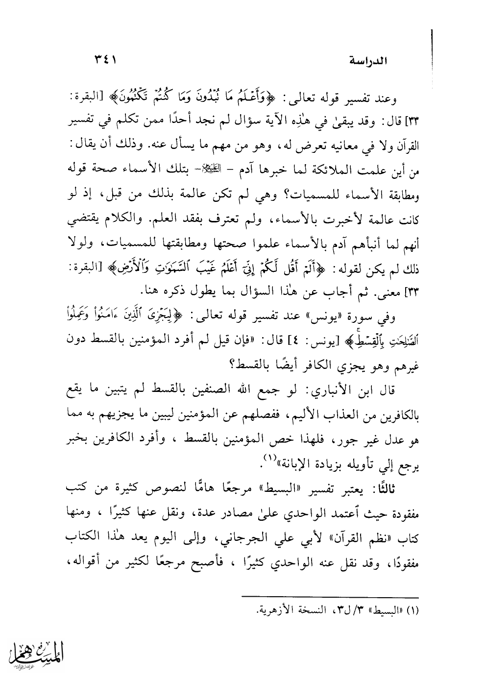(¬1) "البسيط" 3/ ل 3، النسخة الأزهرية.