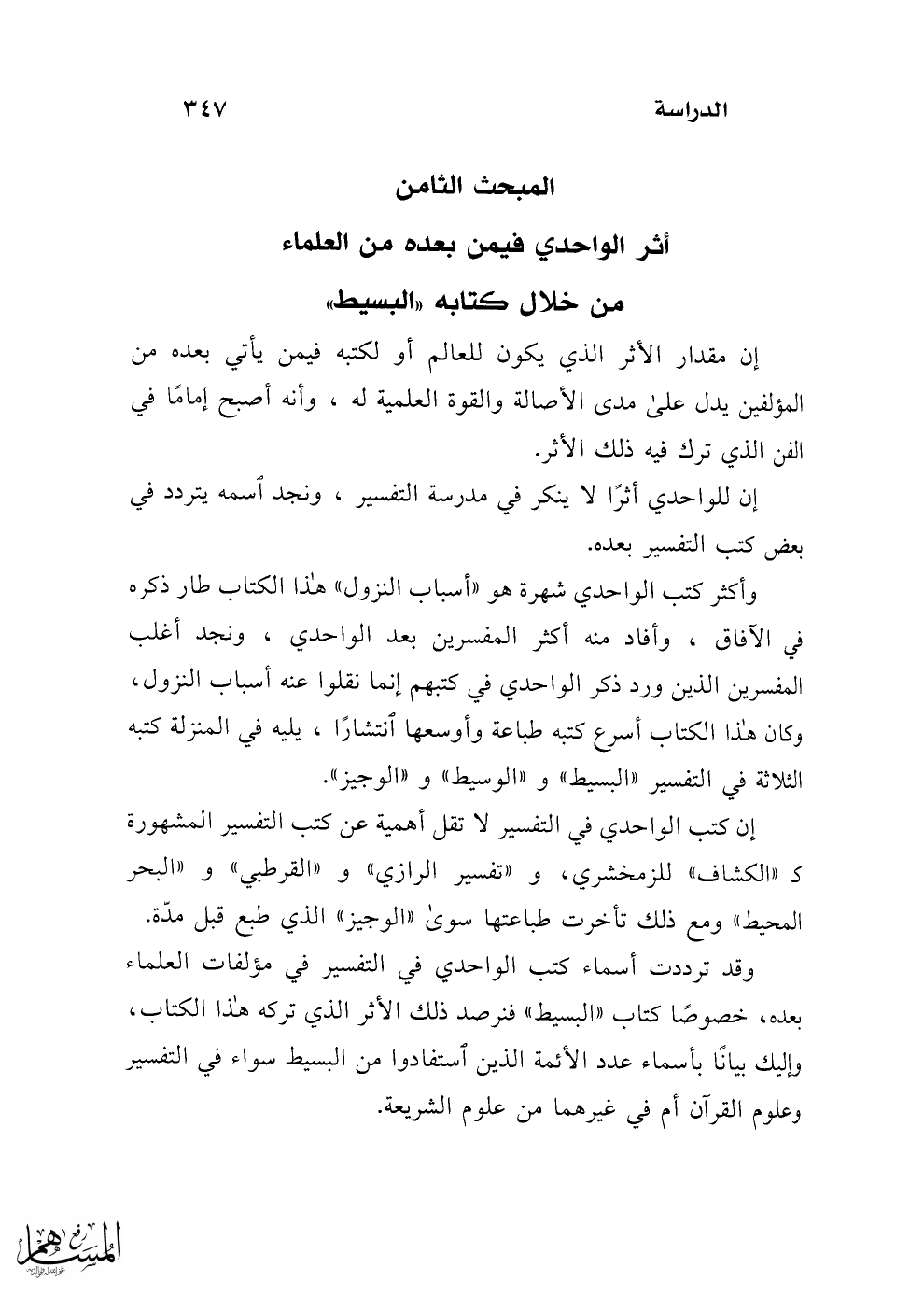 أثر الواحدي فيمن بعده من العلماء من خلال كتابه "البسيط"