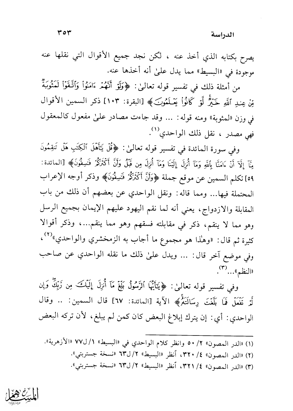 (¬3) "الدر المصون" 4/ 321، انظر "البسيط" 2/ ل 63 "نسخة جستربتي".